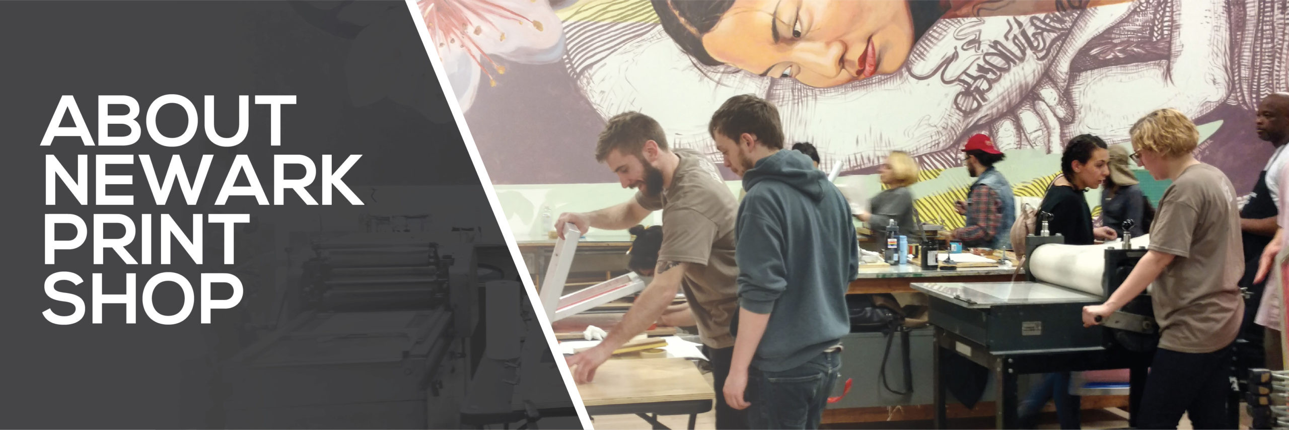 Newark Print Shop is a 501(c)(3) non-profit organization dedicated to promoting the fine art of printmaking by providing a vibrant learning community and access to professional equipment and facilities. The shop incubates artistic expression through education, while simultaneously creating workspace opportunities for shop members and artists in our community.  SHOP HOURS: Monday – Saturday 11am – 4pm  PRINT CLUB: Wednesday 6-10pm