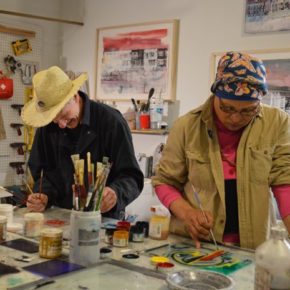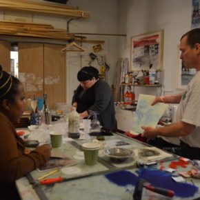 “The print shop began in 2012, when I shared my art studio with fellow artists in need of creative space. We quickly gained momentum in the art community as a consistent resource for folks to create their work in a do-it-yourself environment.” -Lisa Conrad, Founding Executive Director