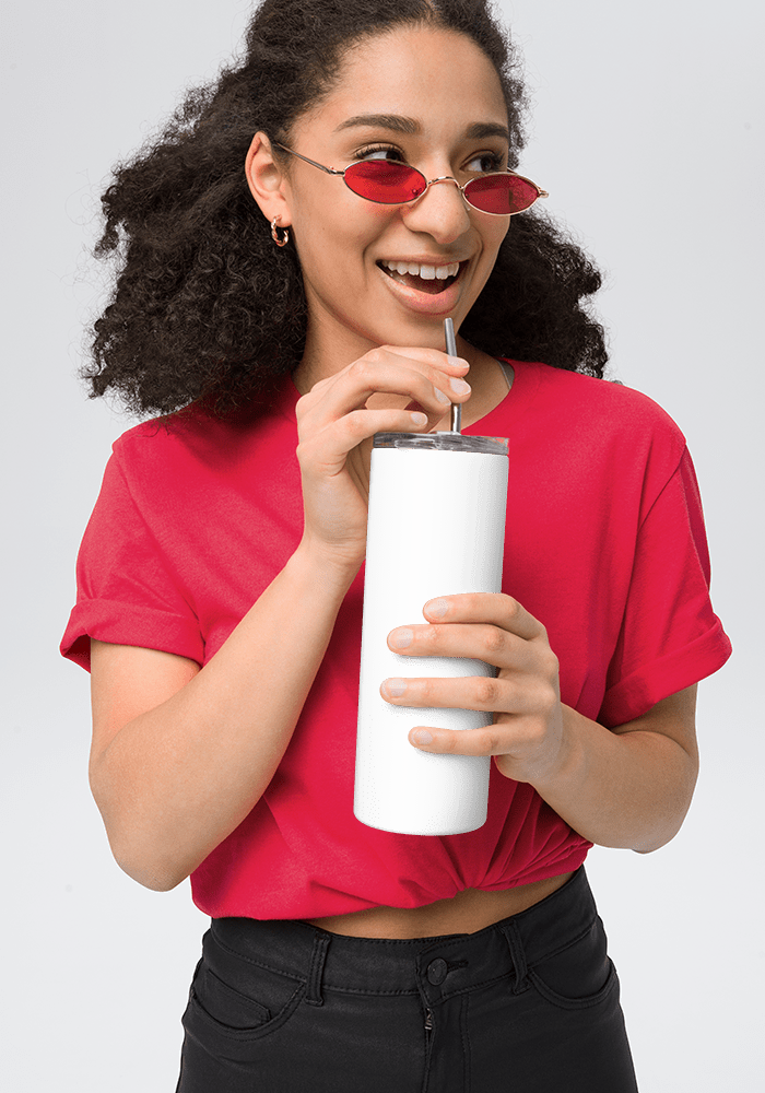 - The tumbler has a cylindrical shape, allowing for a 360-degree printable area.